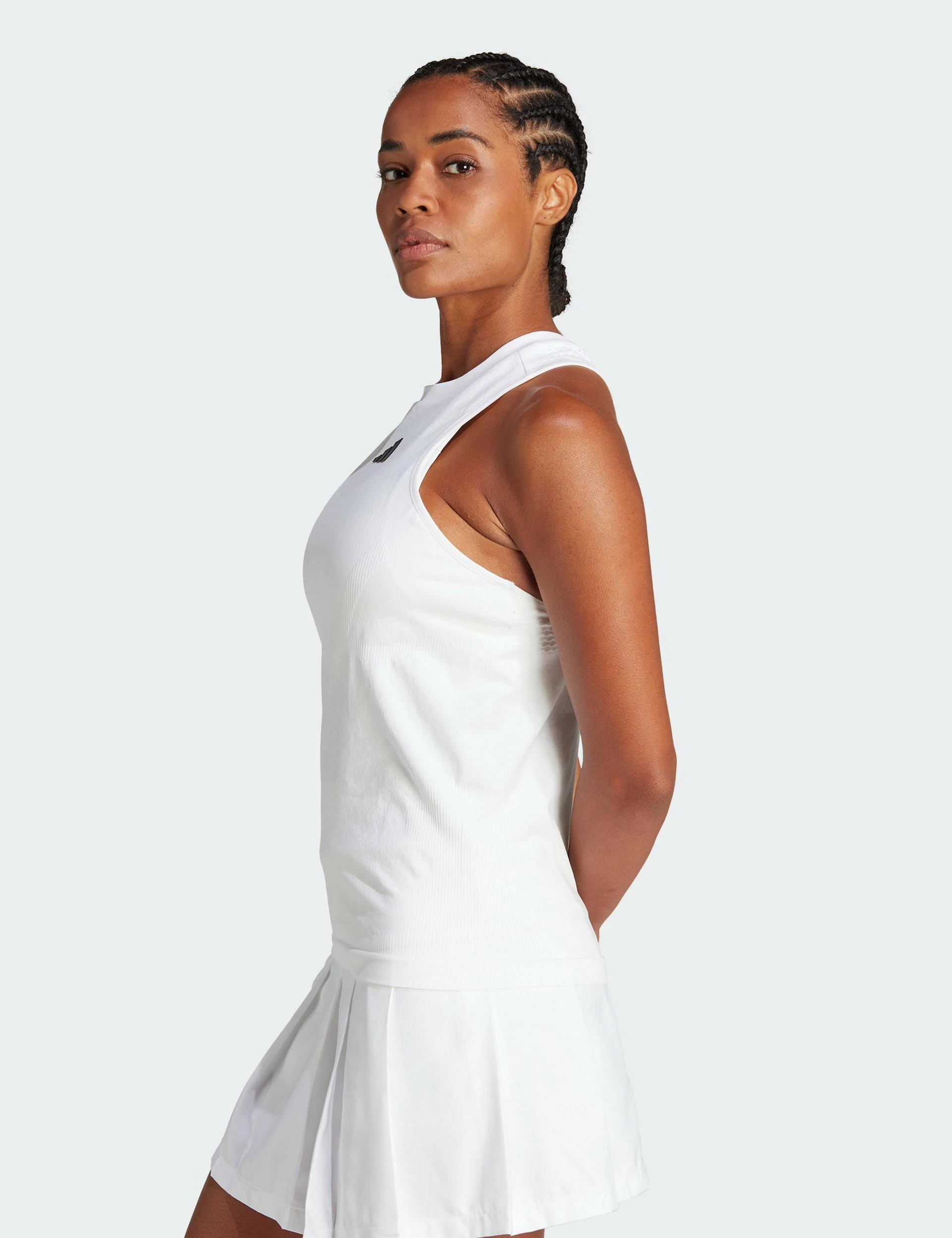 Elevate your drills with the AEROREADY Pro Seamless Tennis Tank Top, blending style and functionality seamlessly. The ribbed round neck adds a touch of sophistication and comfortable fit, allowing you to focus. Experience the power of Aeroready technology, keeping you at the top of your game!