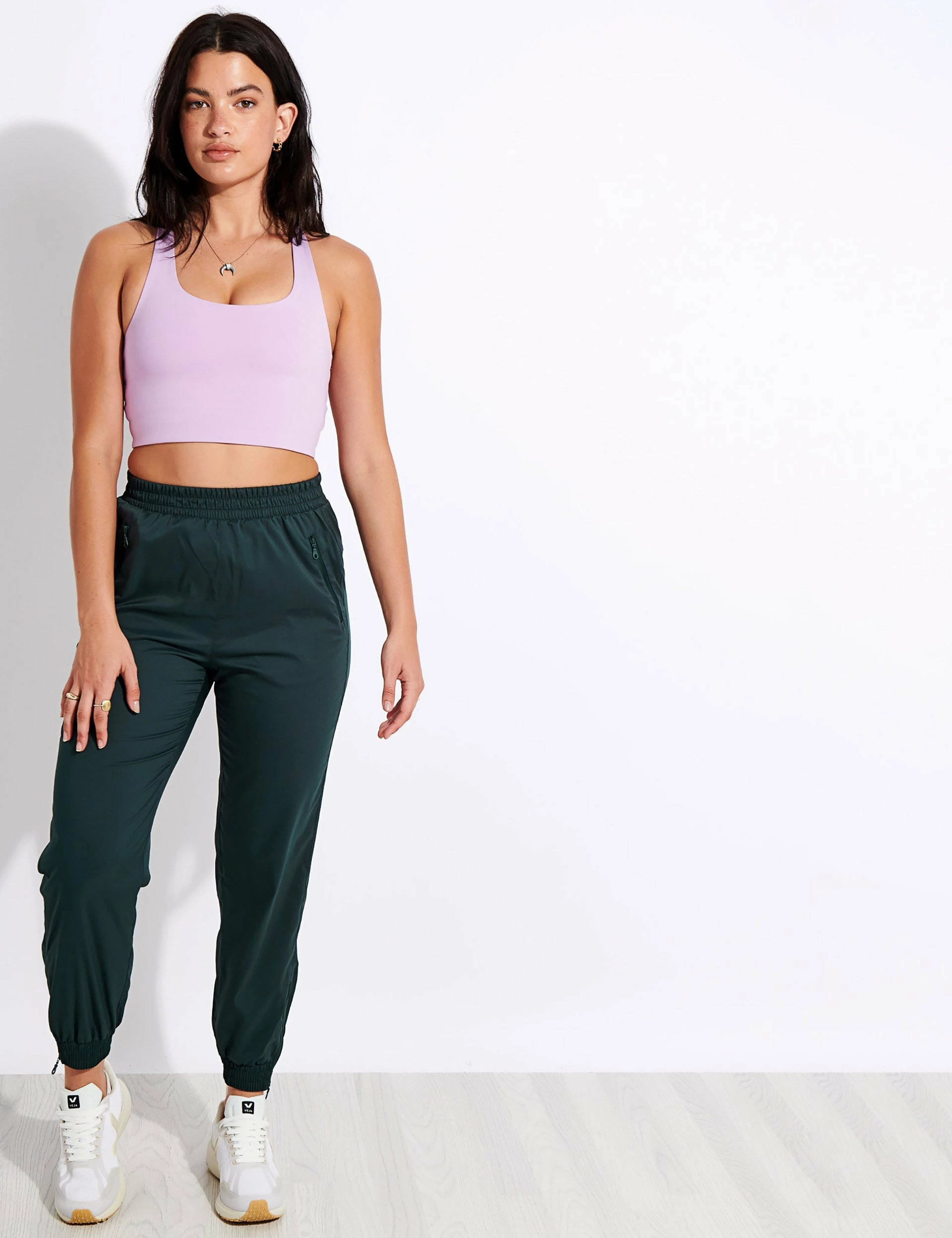 The Girlfriend Collective Summit Track Pant is a high waisted pant you can easily layer over your leggings or shorts for some added warmth. They also have nifty ankle zippers so you don’t have to take your shoes off when taking them off.
