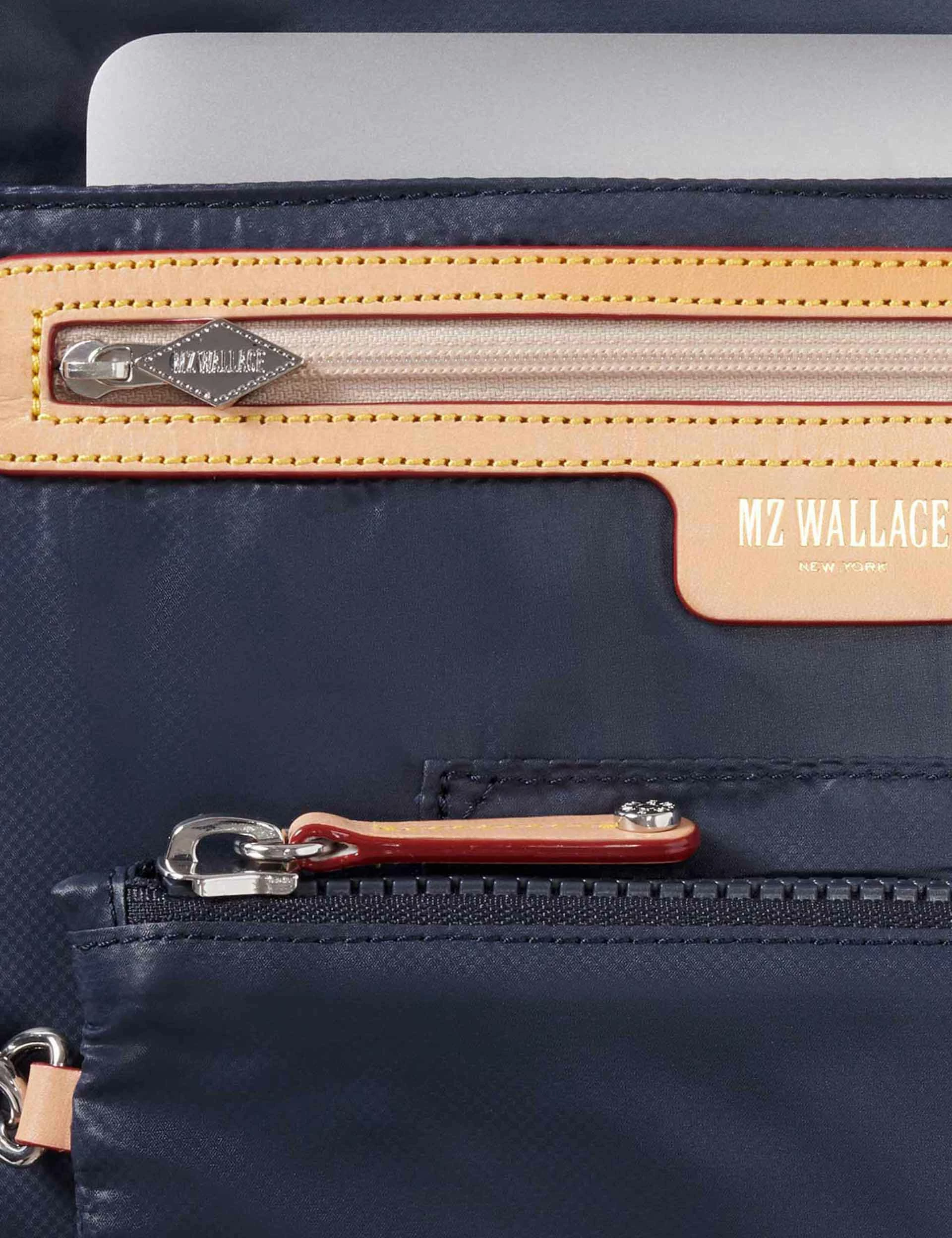 Work or workout; the Metro Backpack Deluxe in Dawn Blue from MZ Wallace is ideal for any outing. This timeless style is made from durable, quilted nylon and features premium italian leather trims.