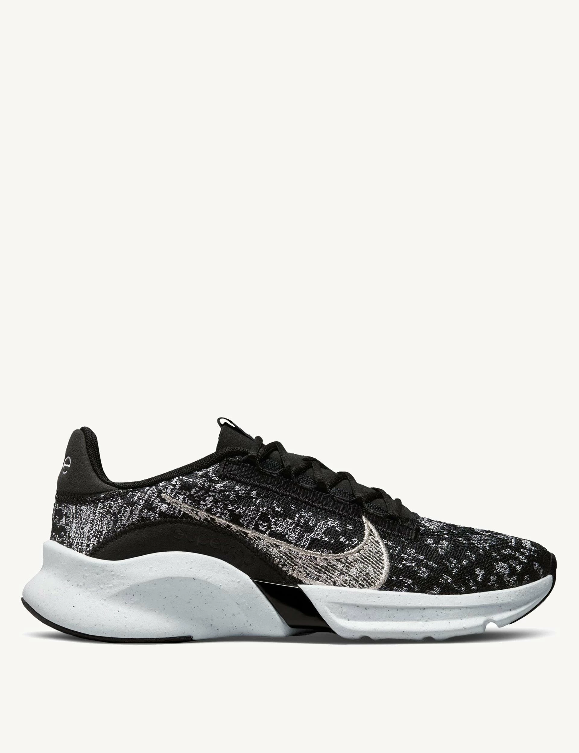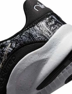 The new Nike SuperRep Go 3 Flyknit is a radical design story rooted in innovation. Made from at least 20% recycled content by weight, the zoned Flyknit construction wraps your foot in 360 degrees of comfort and support. A finely ground, reclaimed foam midsole gives you responsive cushioning for high-impact training.